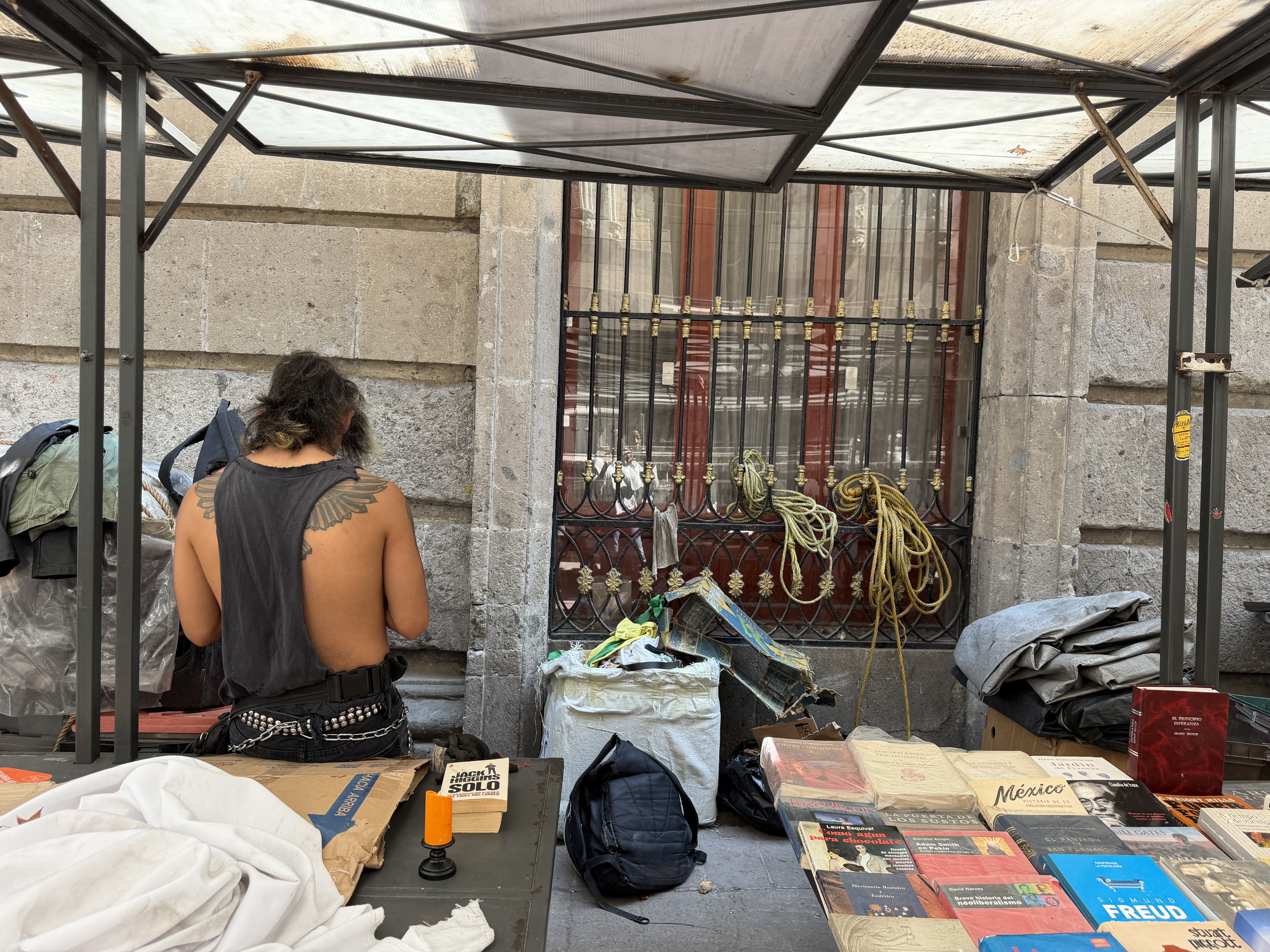 Especially after the relative calm of San Carlos, Mexico City is explosive. Everything is a study of extremes: noise, traffic, crowds, poverty, opulence, culture, smells … There are also crazy juxtapositions everywhere: the magnificence of the post office against the shabbiness of its and its neighbors’ facades, the dirt of downtown amidst a plethora of fancy perfumeries (no less than three on each side of each street), a stunning upscale rooftop restaurant across the street from a drug addict vomiting fluorescent orange onto the sidewalk, colorful settlements glimpsed from the highway that at first glance look like charming little neighborhoods and upon closer inspection reveal themselves to be slums.