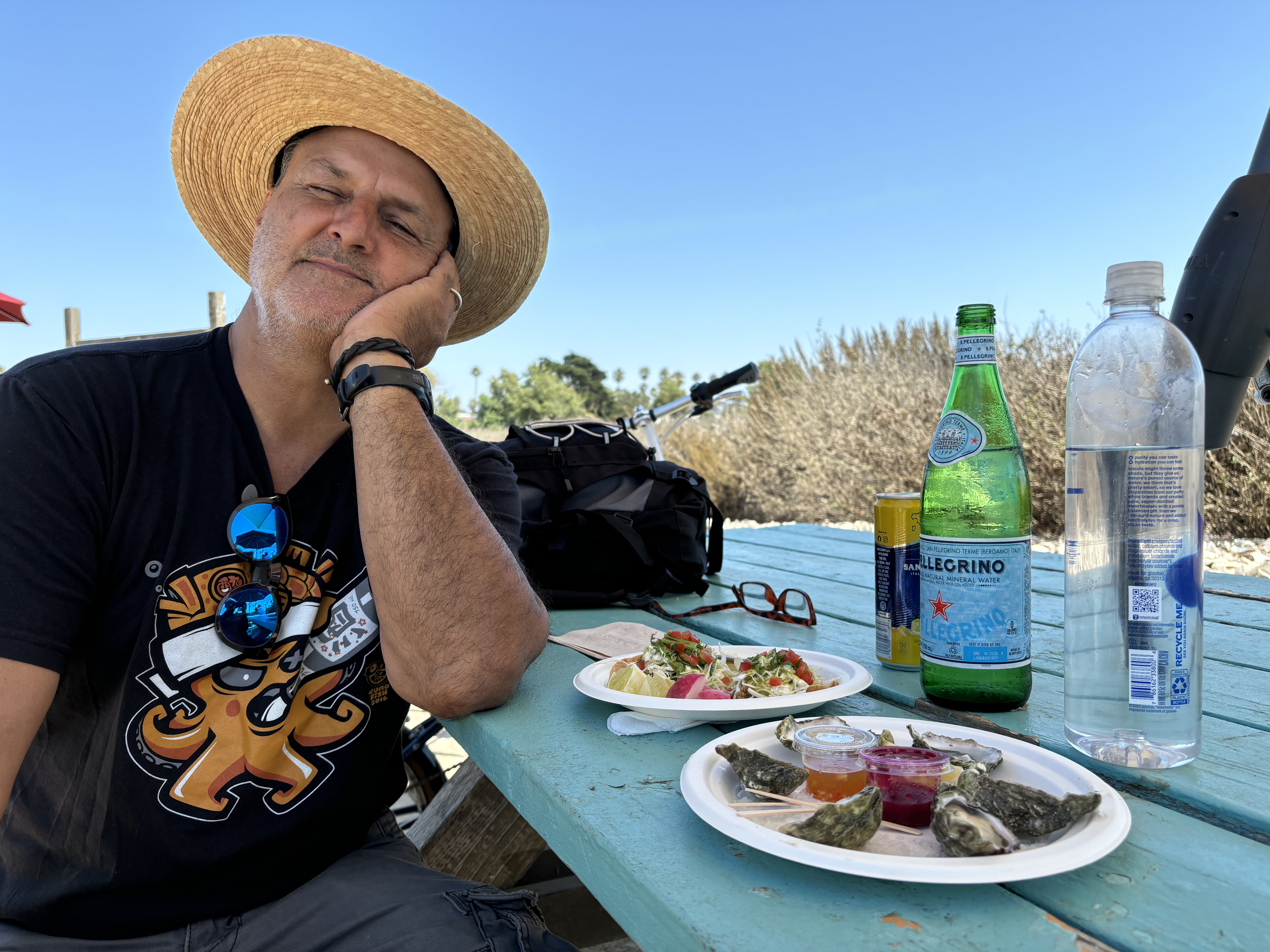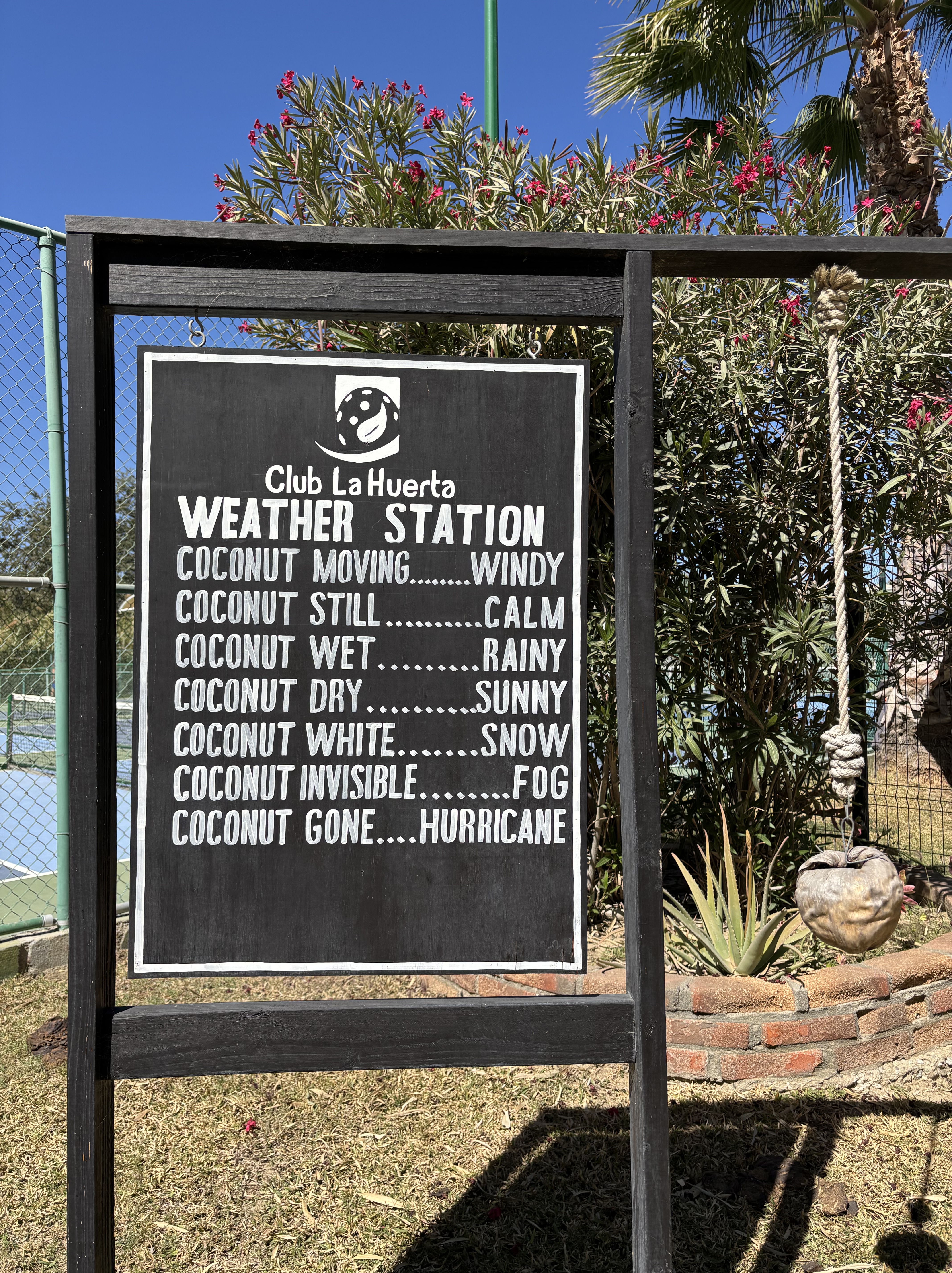 Day two we broke out the folding bikes to tour the town and scope out the local pickleball spot (shout out to Club Huerta!). Rode my bike there — a few intermittently hairy miles away — every other day-ish … and when my tires weren’t flattened by the sketchy road conditions. True confession: I am totally addicted to pickleball. I’ll admit that I’m an enabler, too. There, I’ve said it. Not apologizing, just sayin’. It’s just so. much. fun. I play for hours at a time and love every minute, win or lose. I of course prefer to win, but any good game works. And it’s always entertaining to see that while the names and hometowns change, the characters are pretty much the same: you’ve got your bangers, droppers and spinners; those who take the game entirely too seriously and those who pretend they don’t; the (usually male chauvinist) ball hoggers; the drivers who refuse to play close to the kitchen; the flagrant cheaters and the ones who almost always call a close ball out; the swearers and apologizers; young and old; all sizes, shapes, colors, and backgrounds. It’s truly a great equalizing sport, and the fact that you can go solo and get your fun, cardio, and socialization on for as long and hard as you want … chef’s kiss. Since T will play with me only under duress, and only enjoys playing with particular people, he’s always thrilled when he doesn’t have to sacrifice his time, jeopardize his body and ego (he has experienced some totally-not-funny-but-so-ridiculous-you-can’t-help-but-be-a-terrible-wife-and-chuckle court misfortunes), and inflame his plantar fasciitis just to indulge me.